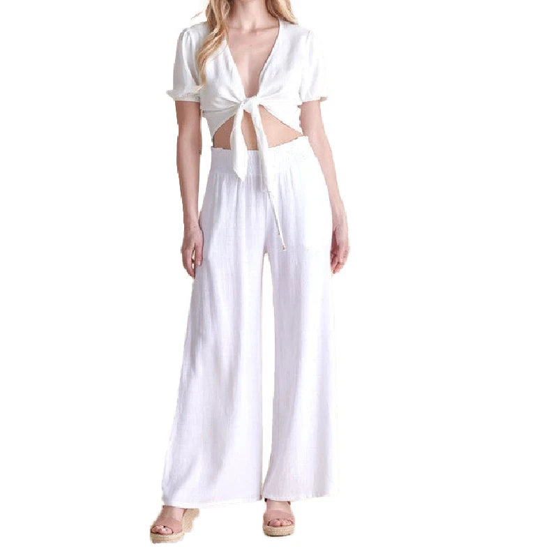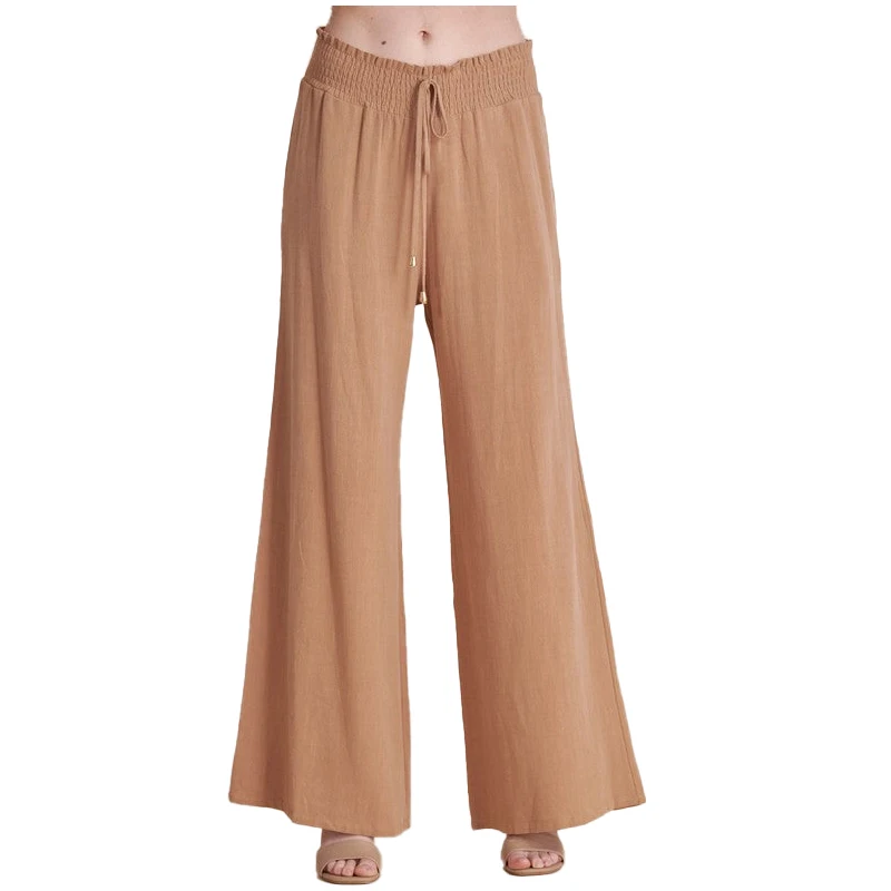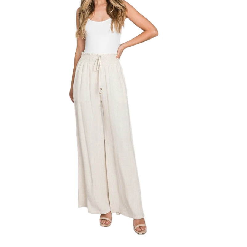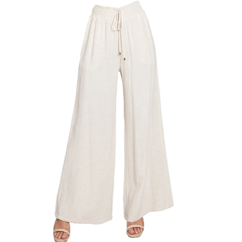 Customized Outdoor Sports Smocked Drawstring Loose Trousers Plus Size Women's Casual Vacation White Linen Pants